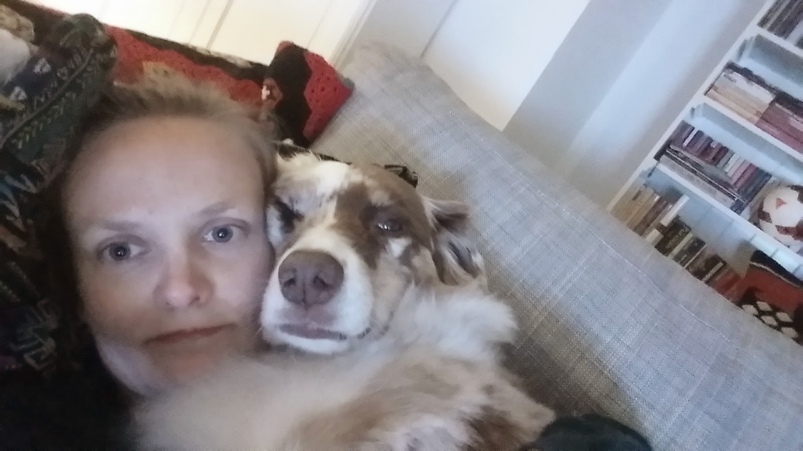 När jag kom hem överrumplades jag av en glad och pigg Movi och en nästan lika glad Sebastian. Jag lade mig på sängen för att ordentligt hälsa på Movi och Sebastian gjorde oss sällskap. Movi som var full av energi sparkade runt mellan mig och Sebastian och vi gosade och skrattade tillsammans.
